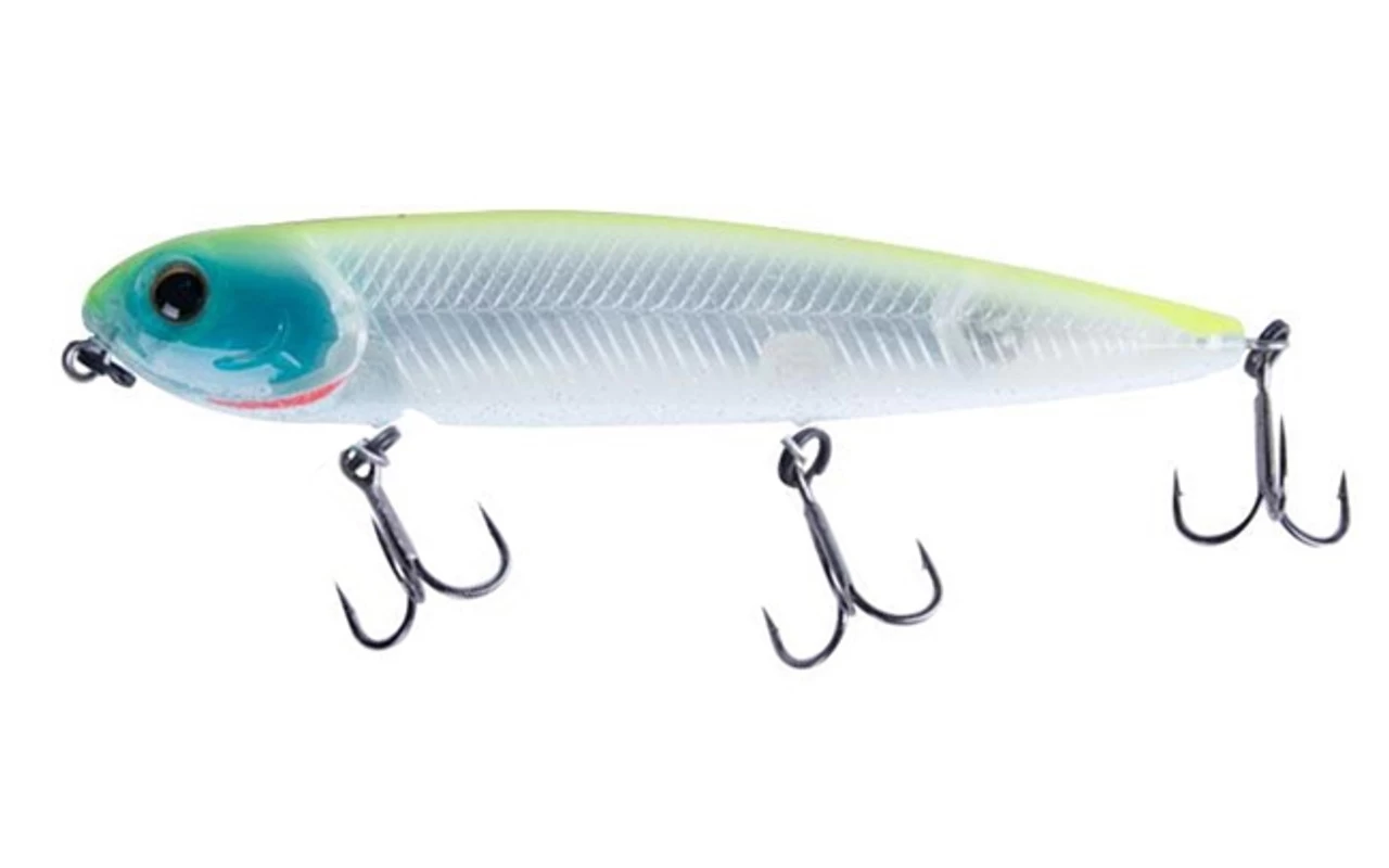 The Reaction Innovations Vixen is a topwater walking bait that returns to the market after a brief time out of production. Bringing with it a storied past, the Reaction Innovations Vixen is certain to be one the most popular topwater baits of this year and beyond. Constructed from a special formulation of plastic that is much harder than your typical injection baits, the Vixen’s internal rattles emit louder sounds with a deeper, resonating tone. As the bait glides across the surface side to side, the rattles call the fish up from deep to come investigate. It’s been referred to as the pied piper of topwater lures for its ability to pull fish from great distances. The action is just incredible – it walks effortlessly and does so whether you prefer a fast, aggressive retrieve or slower, seductive cadence. Attention to detail is second to none with these baits including enlarged, taxidermy quality eyes to the incredibly refined finishes; you can just see the level of thought that went into each component utilized and it’s refreshing. Speaking of the finishes, the baits will keep their color patterns throughout their lifespan even after a number of vicious strikes. Another rarely mentioned quality of the Vixen over other lures is the castability which is largely due to the aerodynamic shape and 3/4oz weight of the bait. Seriously, you can cast this thing a mile. While you may not immediately see that to be of great importance, wait until the fish start breaking the surface around you and only your best casts are capable of reaching them – then you’ll be happy you chose Reaction Innovations Vixen. The Vixen isn’t just a spook knockoff, in fact the body actually has features molded right into it including gills and facial detail that replicates that of a forage fish.